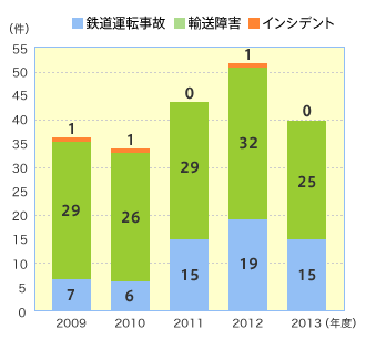 2013年度に発生した国土交通省令「鉄道事故等報告規則」に基づく、「鉄道運転事故」「輸送障害」「インシデント」の発生状況についてお知らせします。