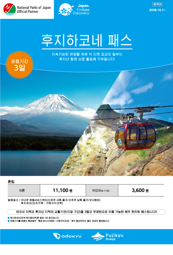 • 로망스카를 비롯한 특급열차·특급 버스(고텐바∼가와구치코선)·후지 등산전차는 별도 요금이 필요합니다.