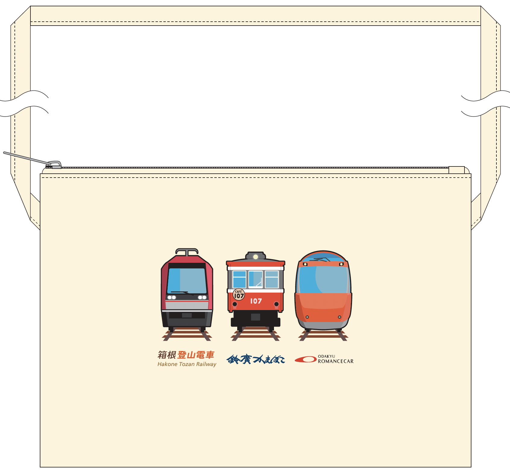 3社が保有する車両 [鈴廣:箱根登山電車モハ1形107号/小田急電鉄:小田急ロマンスカーGSE(70000形)/小田急箱根:アレグラ号(3000形)] のイラストを用いた特別デザインです✨販売数量は限定600個です。
