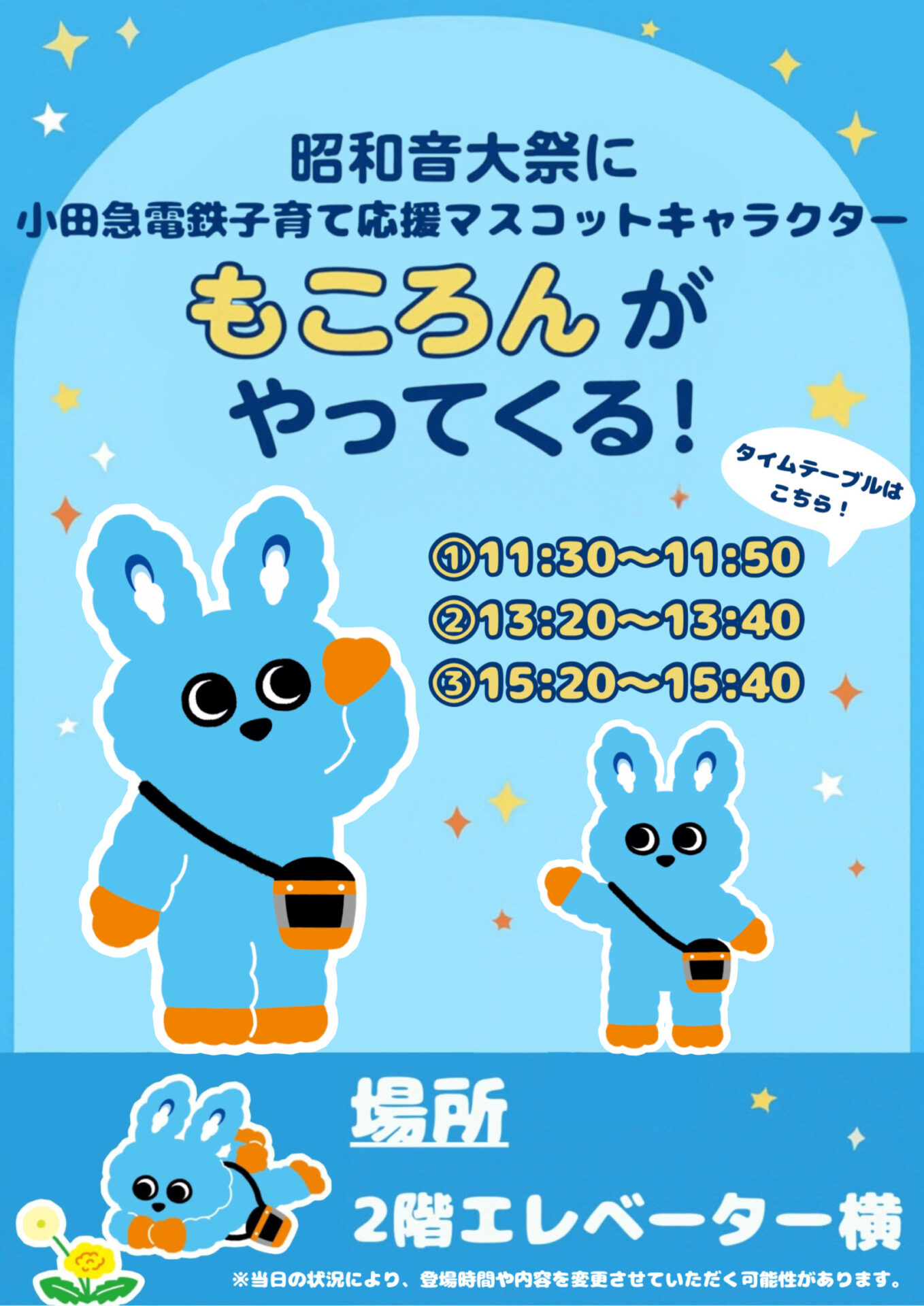 「もころん」の登場時間は両日とも以下の3回を予定しています✨
