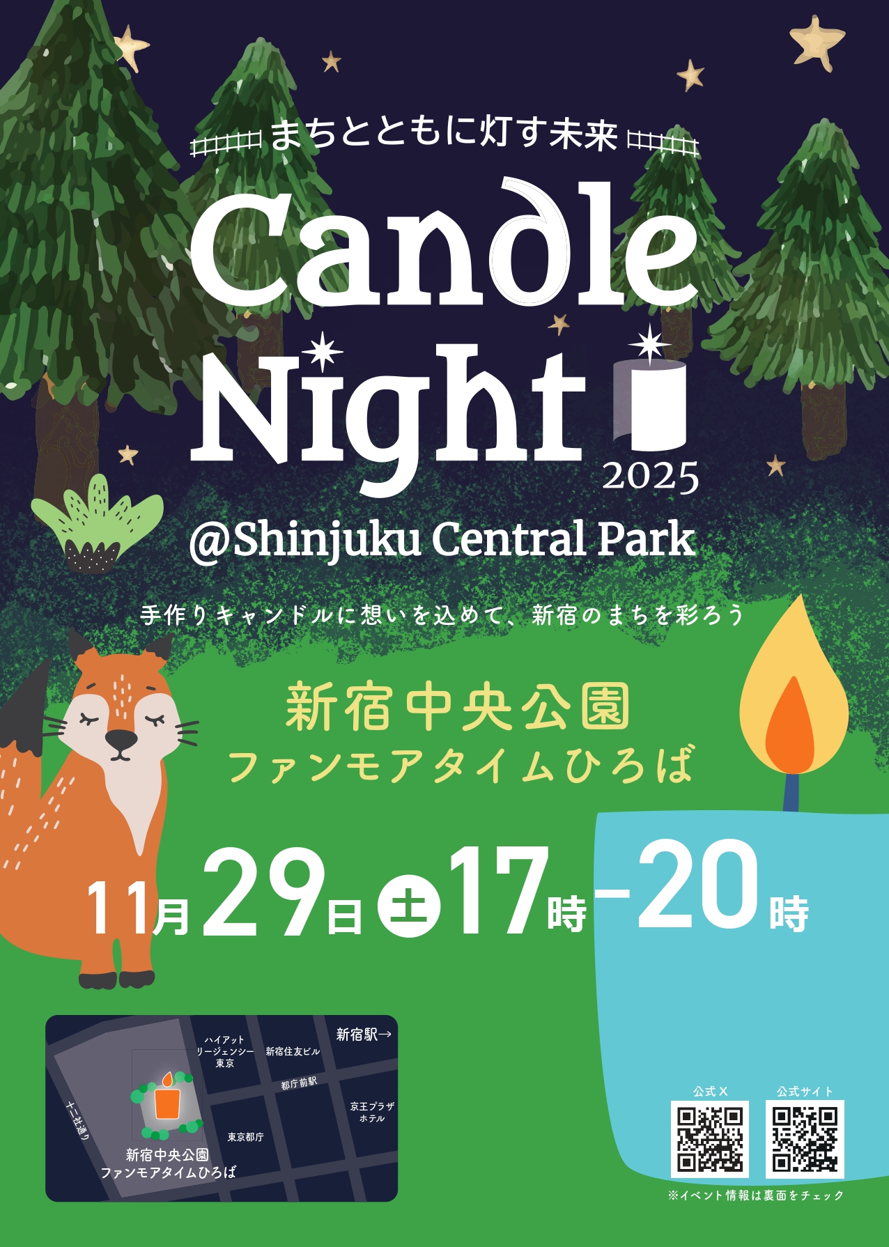 イベント当日の開催状況や各種お知らせについては公式X(旧Twitter)アカウント『Candle Night @ Shinjuku』または下記チラシをご覧ください🌱