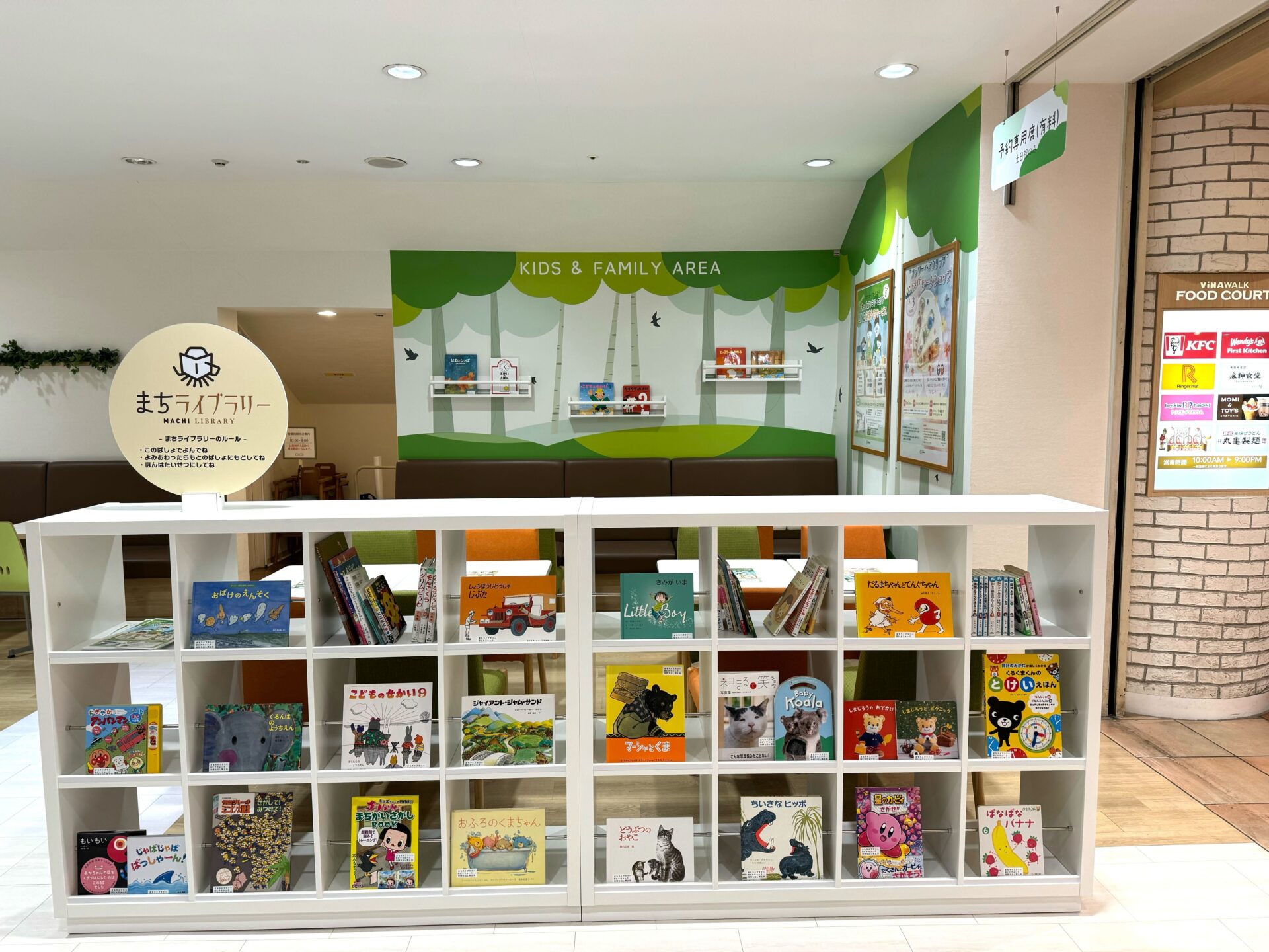 ビナウォークでは、3番館1階のフードコート「キッズ&ファミリーエリア」内に、フードコートをご利用のお子さまにお読みいただく絵本コーナーを設けております!