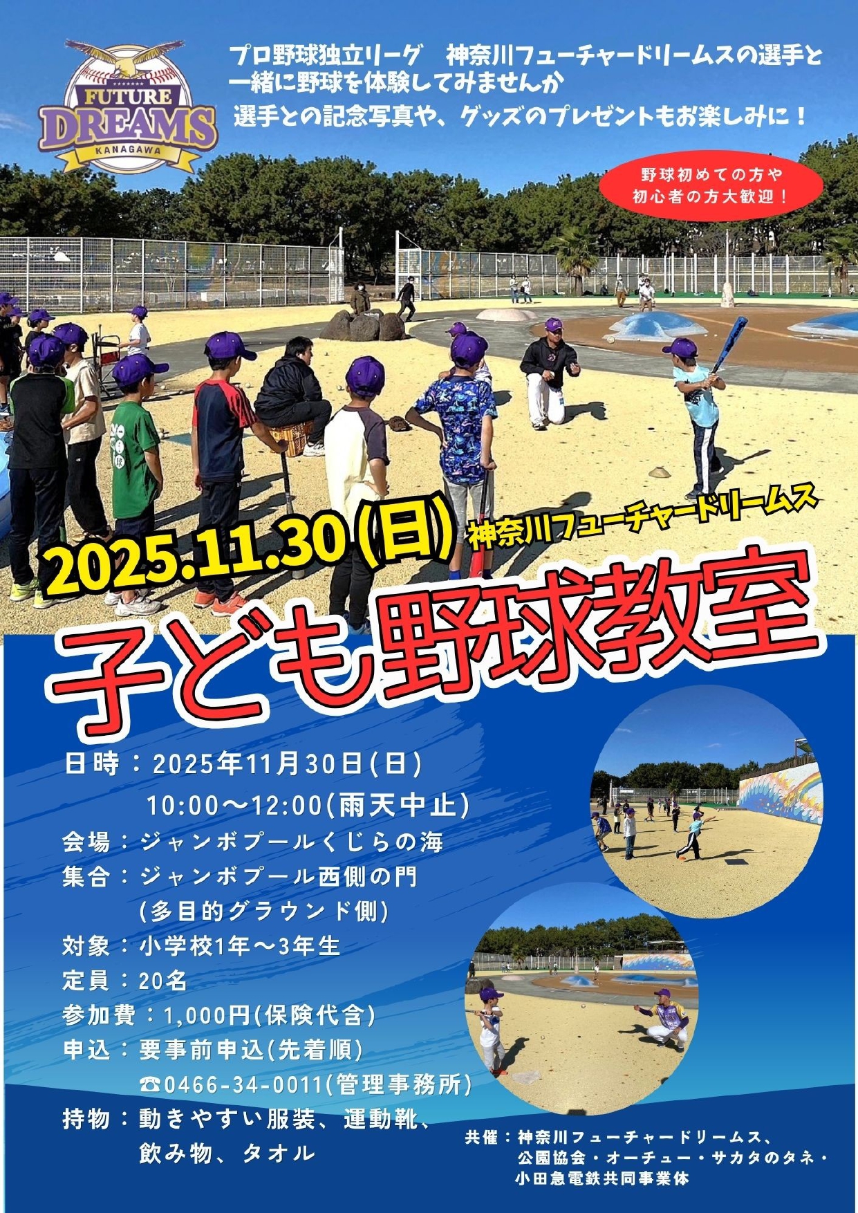 プロ野球独立リーグ 神奈川フューチャードリームスの選手と一緒に、野球を体験いただけます🧢✨