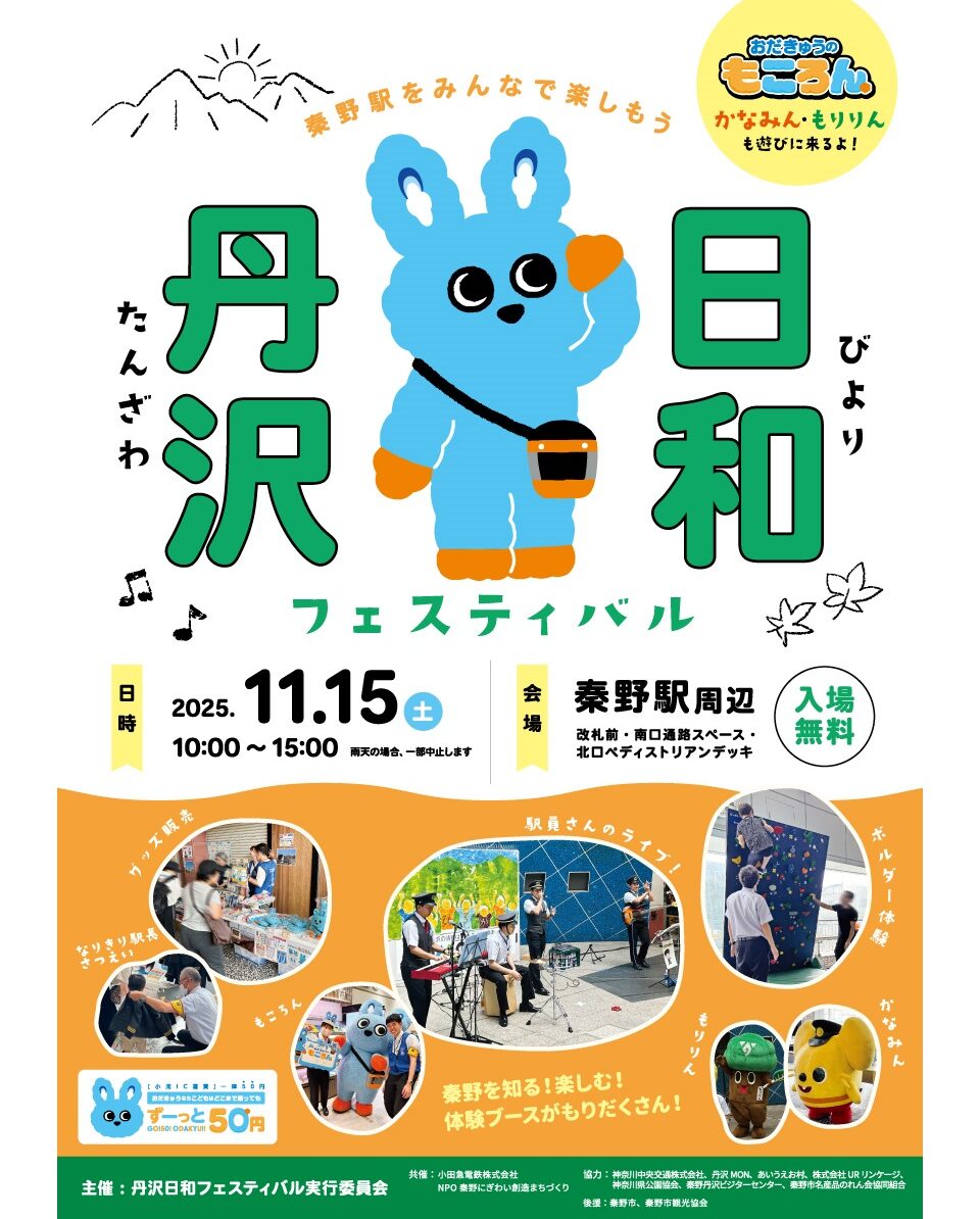 11月15日(土)、ご家族みんなで楽しみながら秦野地域に愛着をもつことが出来るイベントとして、「丹沢日和フェスティバル」を秦野駅にて開催いたします!