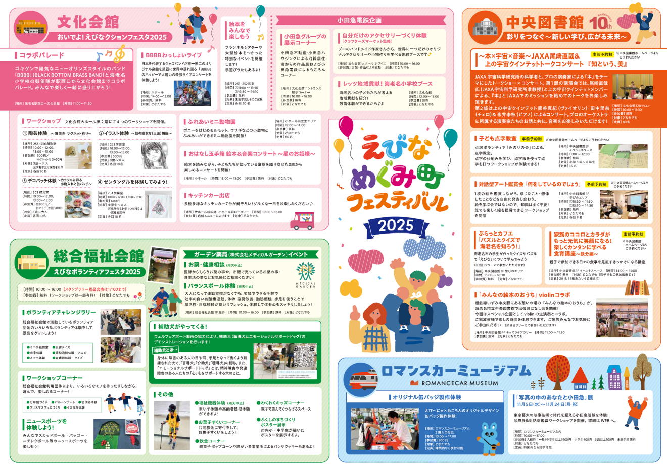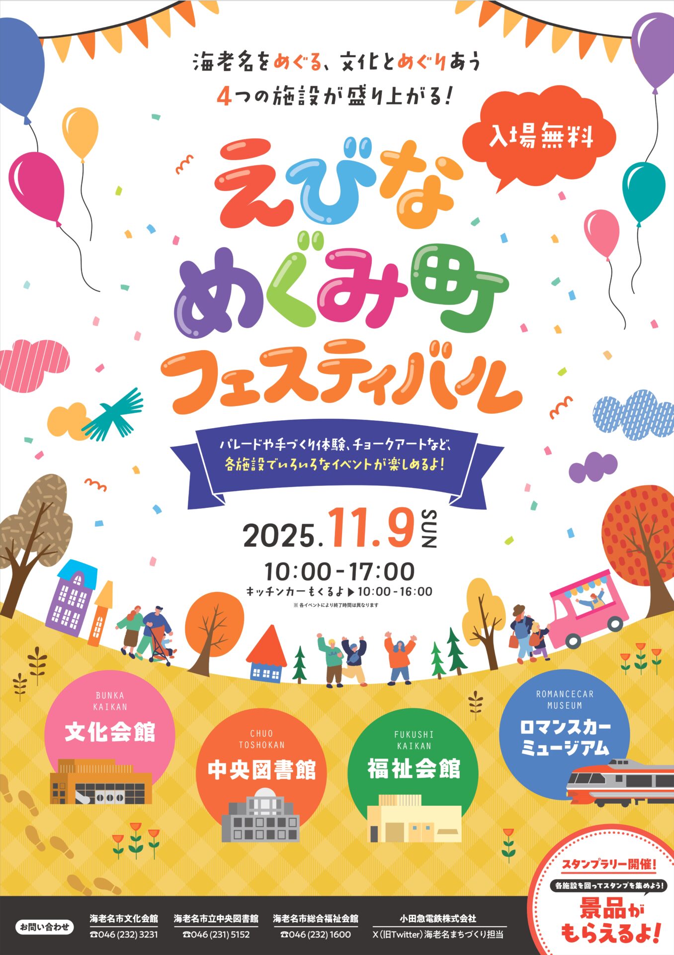 | 開催場所 | ロマンスカーミュージアム、海老名市文化会館、海老名市立中央図書館、海老名市立総合福祉会館 |
