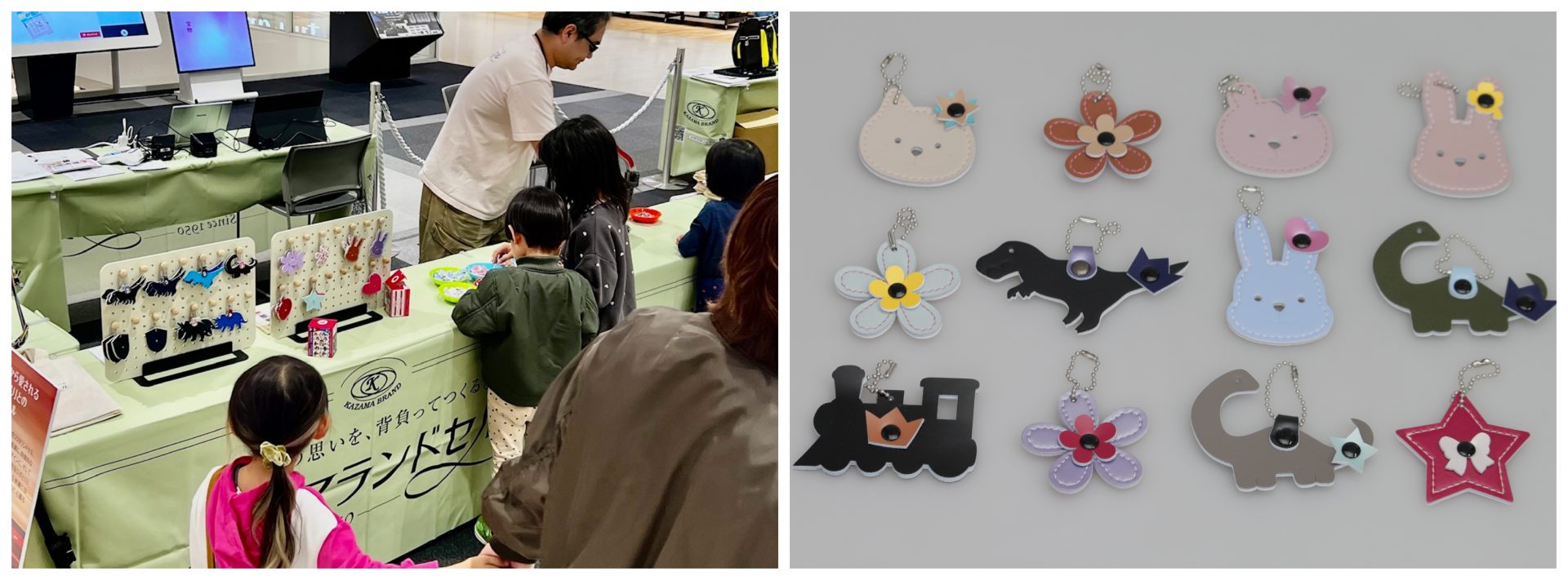 カザマランドセルより、ランドセルの革(端材)を使用した無料のキーホルダーづくりのワークショップを行います。
