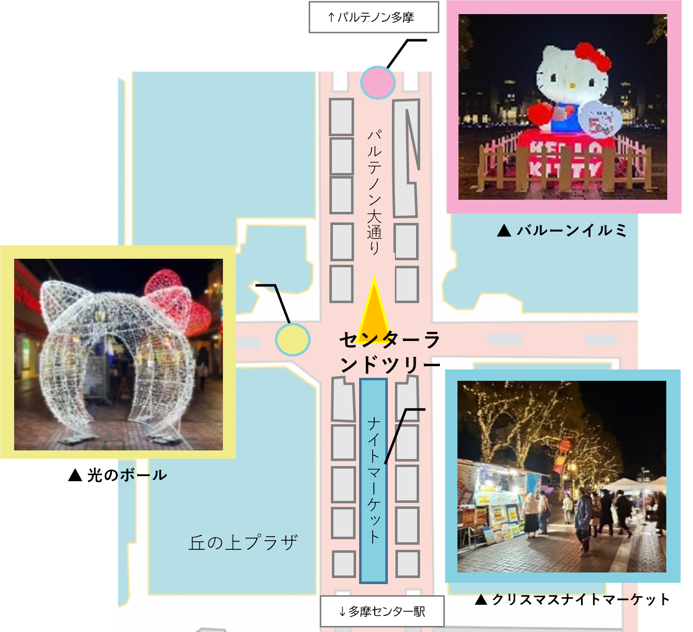 ・多摩センターイルミネーション:2025年11月15日(土)~2026年1月12日(月・祝) ・多摩センターイルミネーションにハローキティがやってくる!:2025年12月20日(土)15:00~19:00 |