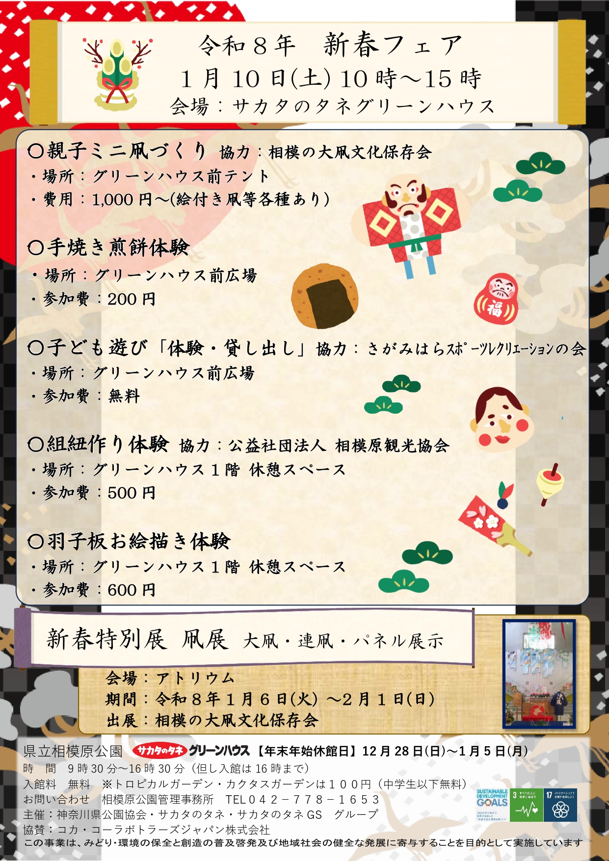 新春の風物詩を楽しむ「新春フェア」が2026年1月10日(土)、県立相模原公園サカタのタネグリーンハウスで開催されます🎍