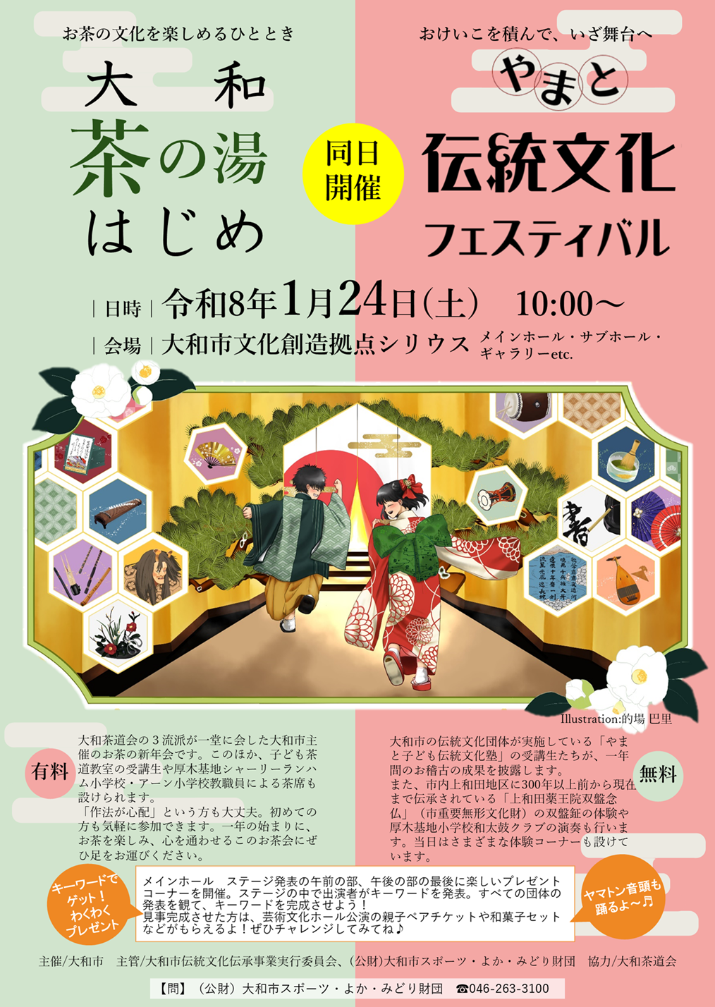 子どもたちによる伝統文化体験教室の発表会「やまと伝統文化フェスティバル」が1月24日(土)、大和市文化創造拠点シリウスのメインホールとギャラリーで開催されます。