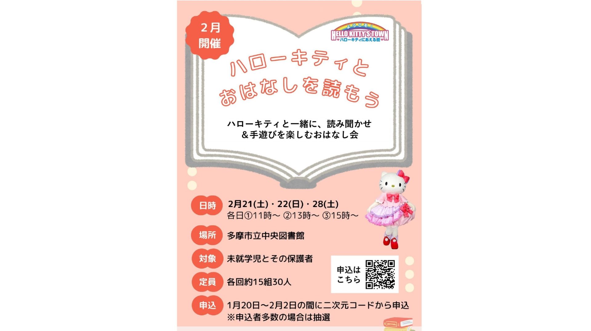 多摩市立中央図書館で「ハローキティとおはなしを読もう」が開催されます✨