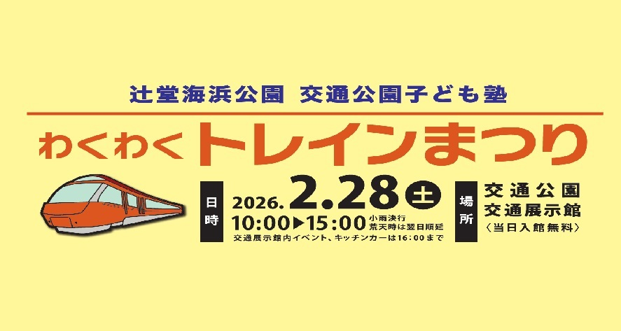 2026年2月28日(土)、神奈川県立辻堂海浜公園の交通公園および交通展示館にて「わくわくトレインまつり」を開催いたします🚃✨
