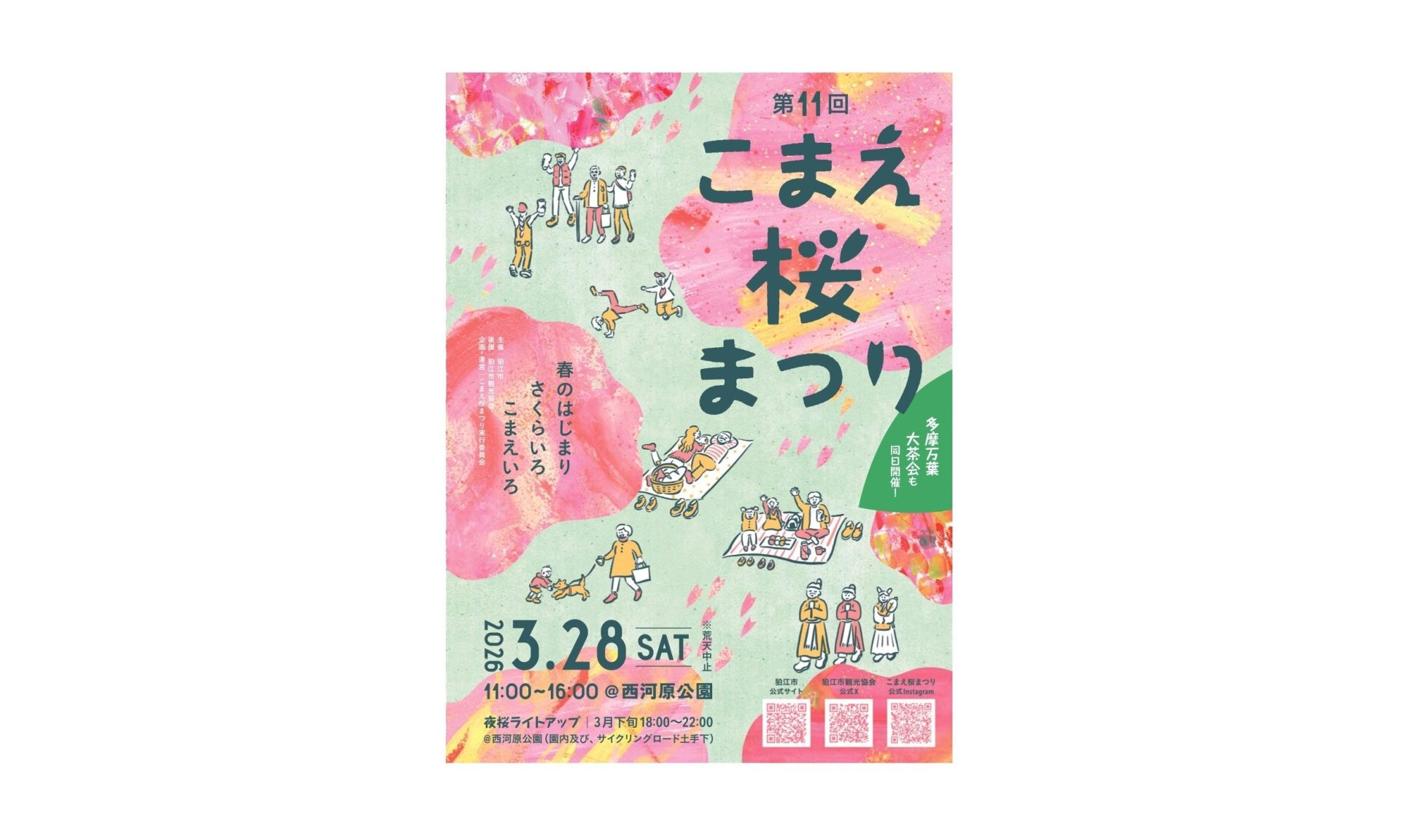 3月28日(土)狛江市西河原公園にて、【こまえ桜まつり】開催されます🌸