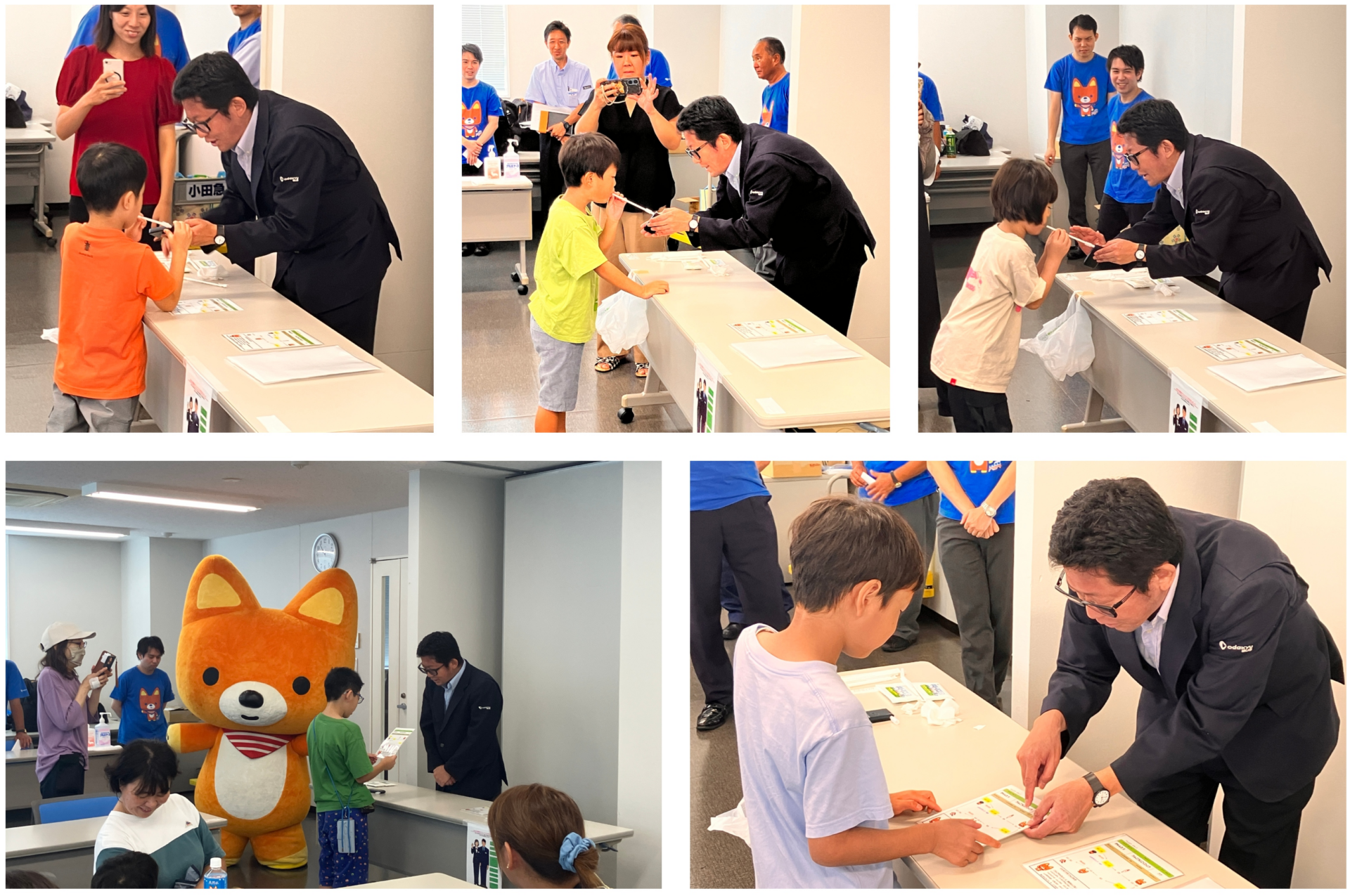 営業所に到着すると、小田急バスで働く皆さまが笑顔でお出迎えしてくださいました。登戸営業所の谷中所長からのご挨拶の後、マスコットキャラクター「きゅんた」が登場❤「きゅんた」が見守る中、バスの運転士が乗務前に実施するアルコールチェックなどの点呼を体験しました。また、「きゅんた」と写真撮影も行いました♪