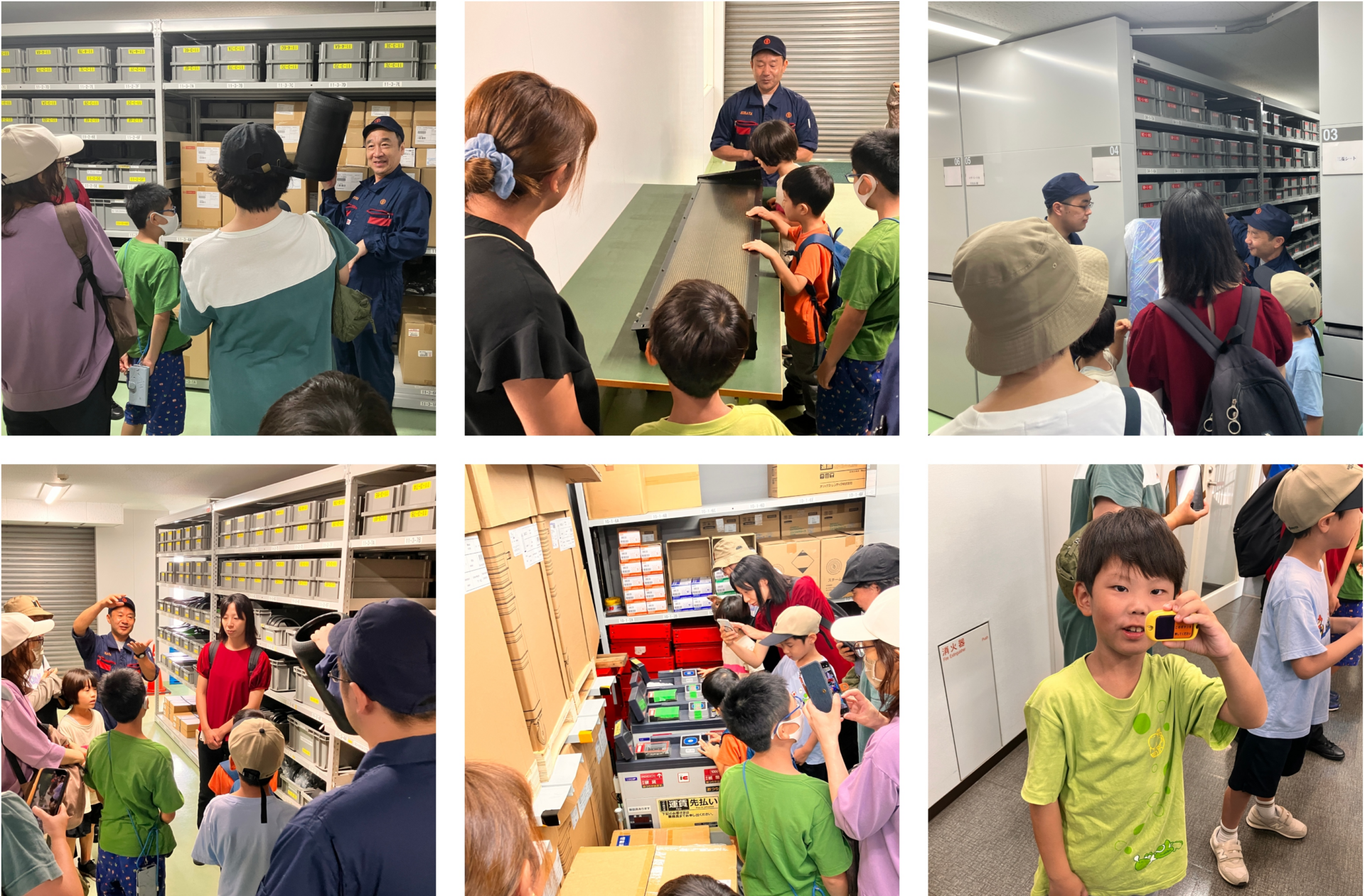 点呼体験の後は、施設内の見学を行いました。部品センターには、普段は間近で見ることができない行先表示版や、バスの運転席横に設置されている運賃箱、そしてバスに使用されている多くの部品が保管されていました。