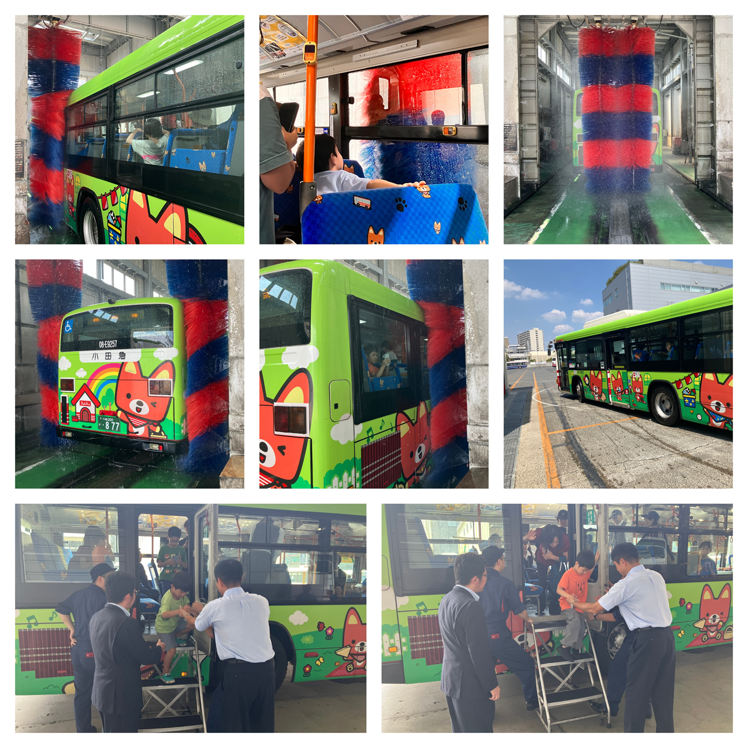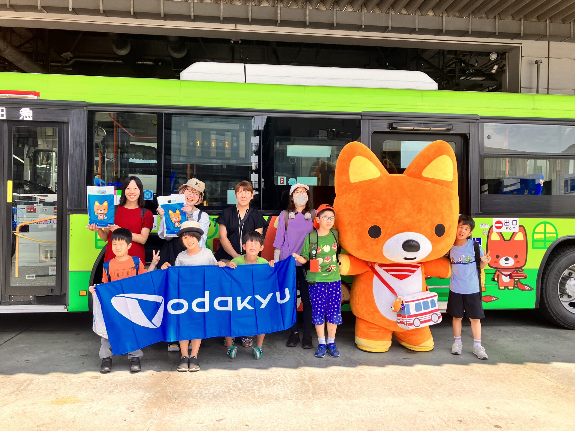 当日は猛暑日でしたが、皆さま元気に向ヶ丘遊園駅に集合してくださり、小田急バスのマスコットキャラクター『きゅんた』が描かれたラッピングバスに乗車して、登戸営業所へ向かいました!