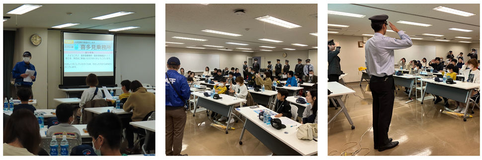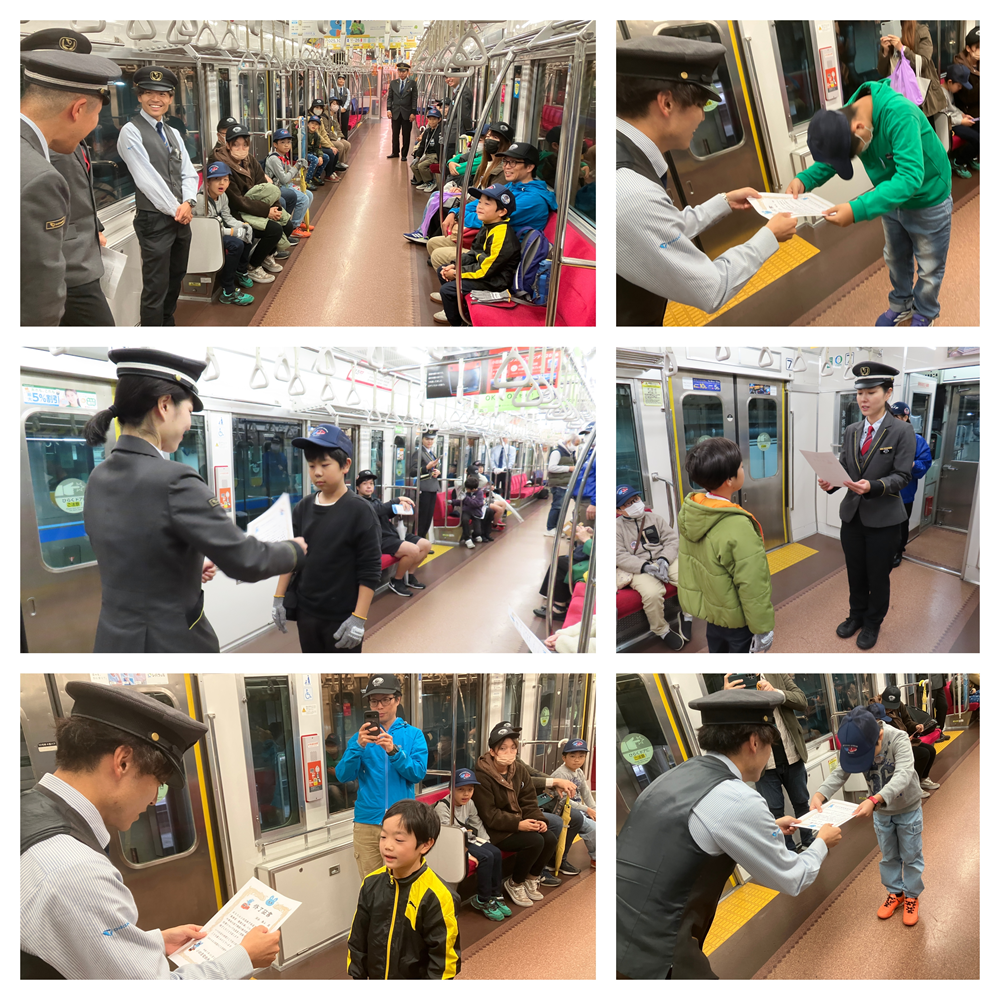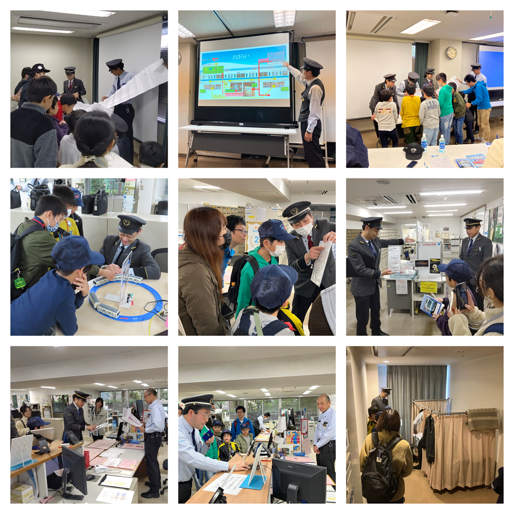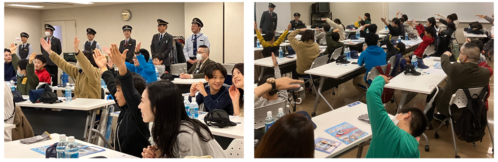喜多見電車基地内にある会議室で、現役の運転士・車掌が皆さまを笑顔でお出迎えし、乗務員のお仕事を動画やクイズを用いて、説明しました。クイズはジェスチャーを交えた回答方法で親子で考えながら挑戦していただきましたが、正解者が多く、皆さまの知識の高さに大変驚きました!