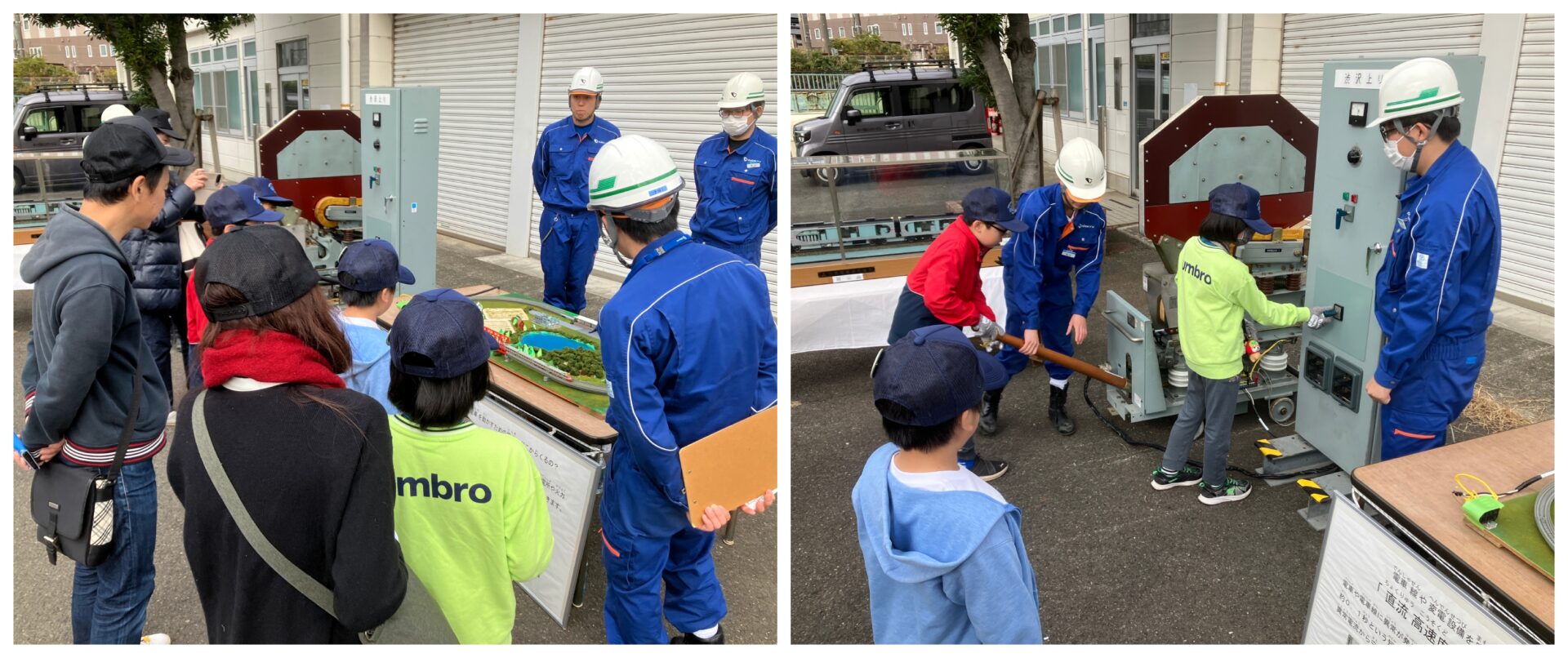 普段は絶対に触ることができない架線などの電気設備も実際に触れてみることができました。
