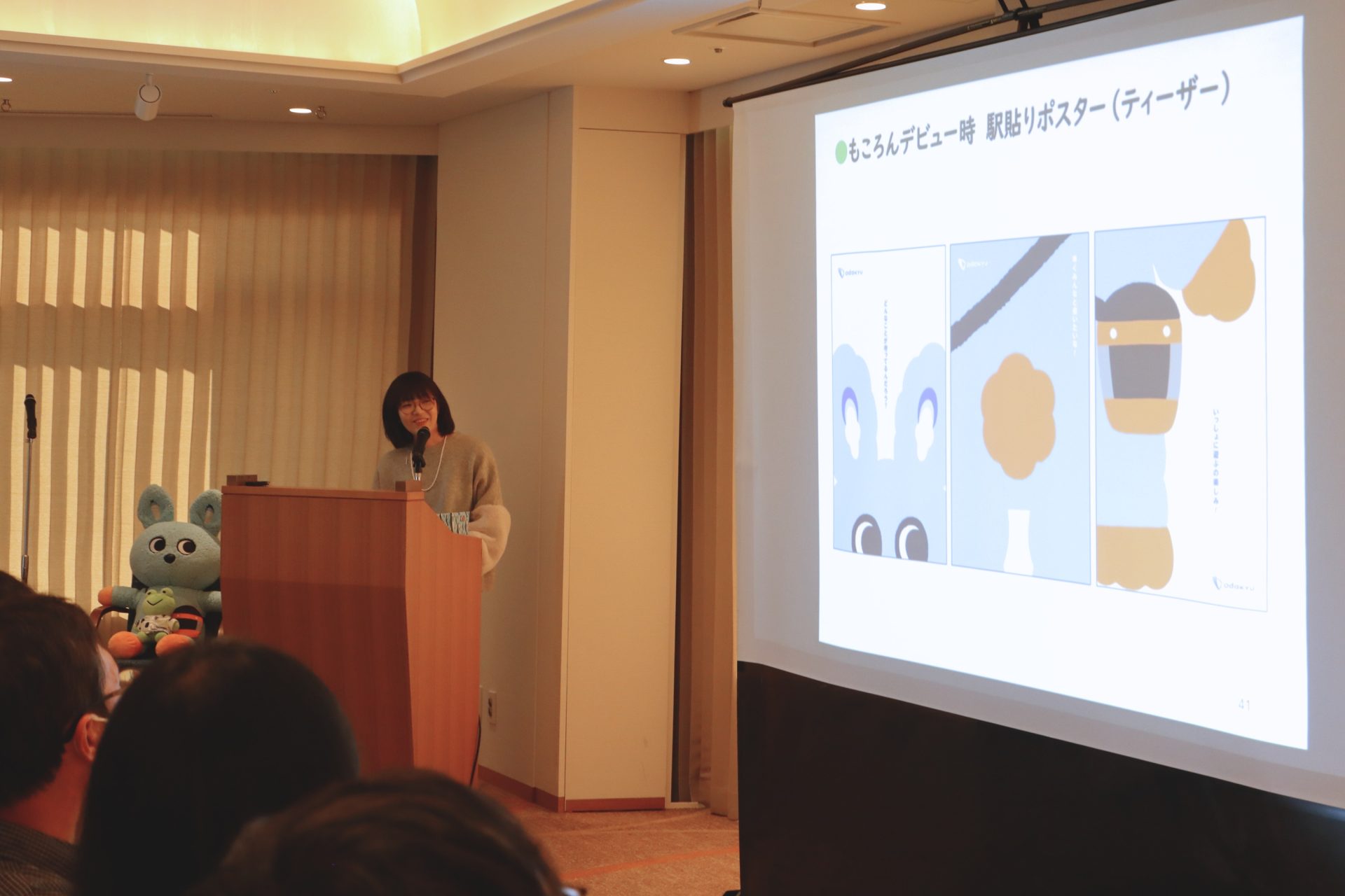 講演では、絵を描くのが好きだった子ども時代からイラストレーターとして活動を始めるまでの道のり、人とのつながり、地元・静岡県焼津市での活動、そして小田急電鉄の子育て応援マスコットキャラクター「もころん」が誕生するまでのエピソードなど、興味深いお話がたくさんありました。キャラクターを通じてできることについてのメッセージも!