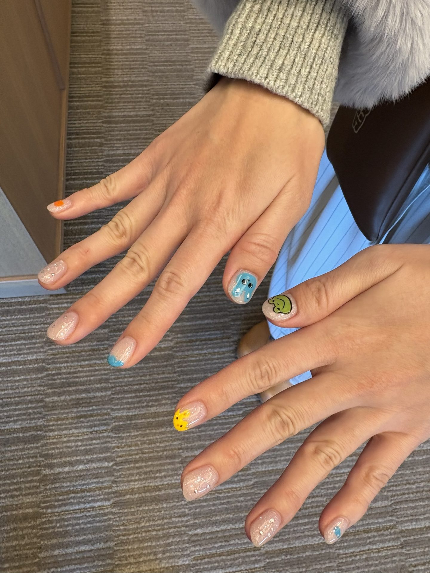 小田急電鉄の子育て応援マスコットキャラクター「もころん」やまむらさんオリジナルキャラクターかえるの「る~くん」のぬいぐるみなど、グッズを身に付けた参加者も多く、会場は温かい雰囲気に包まれていました。やまむらさんも、講演に合わせて、もころん&る~くんデザインのネイルで登場♪