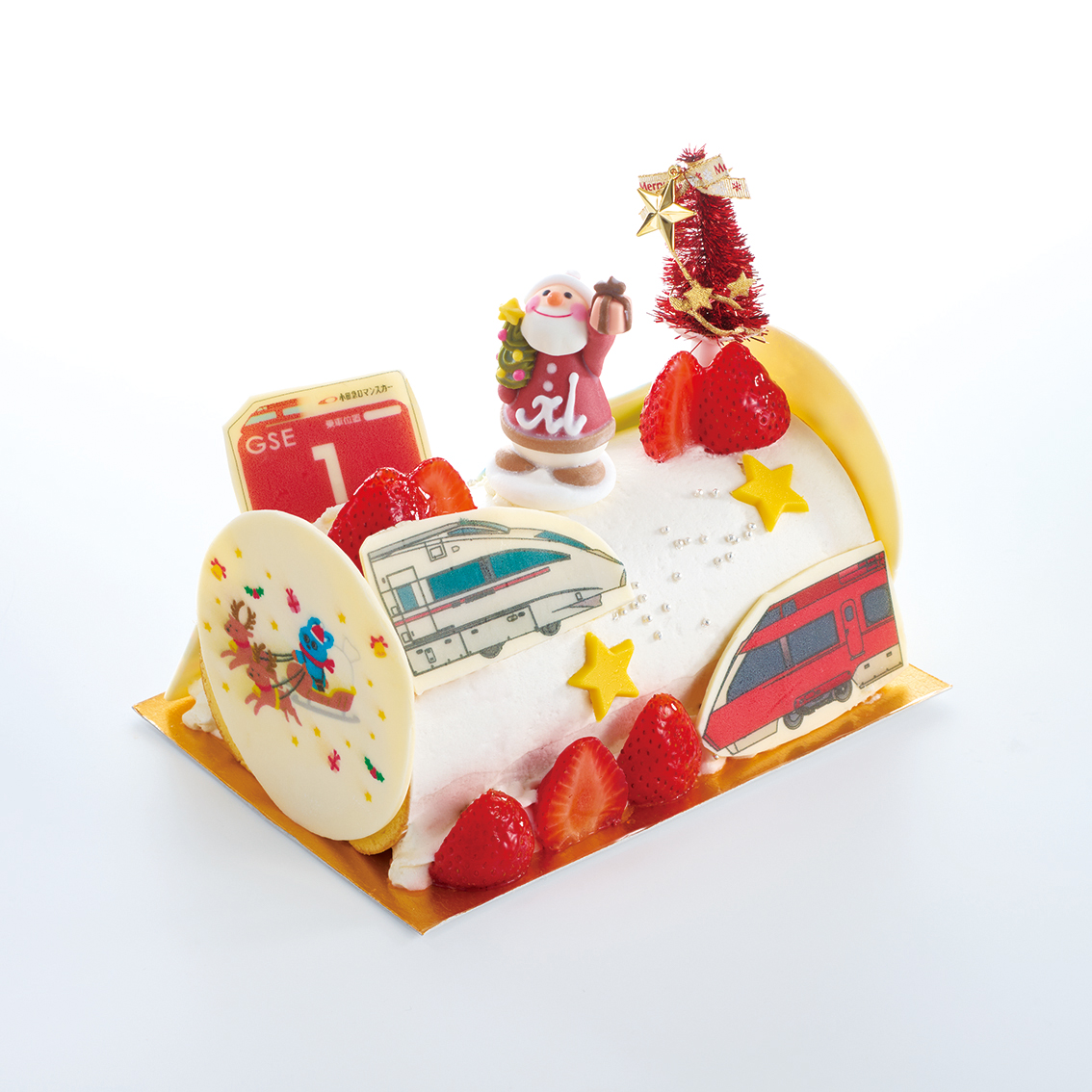 「もころん」とサンタクロースがロマンスカーに乗って、プレゼントを届けに行く様子をイメージした楽しいケーキです🎄🎁