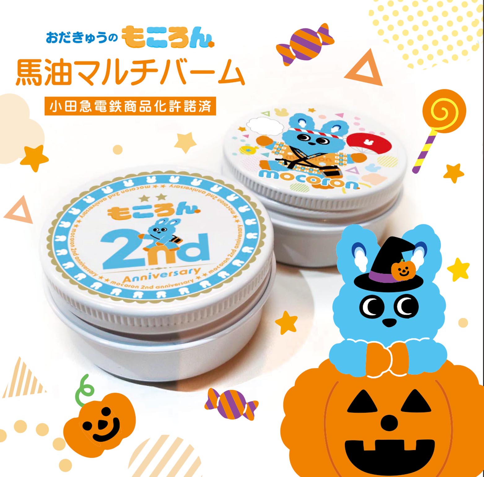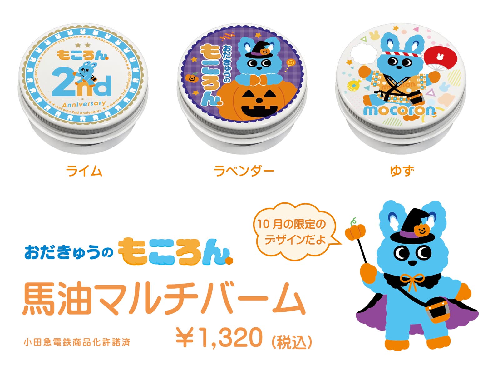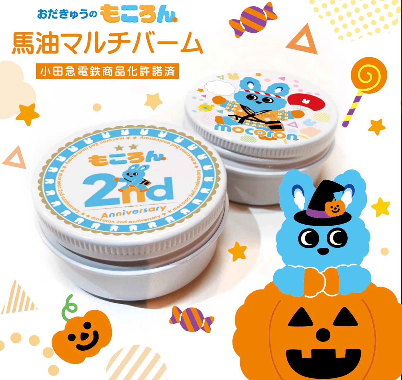 小田急沿線の子育て応援の象徴である「もころん」の絵柄をあしらった、10月限定販売の可愛いマルチバーム缶をご用意しました