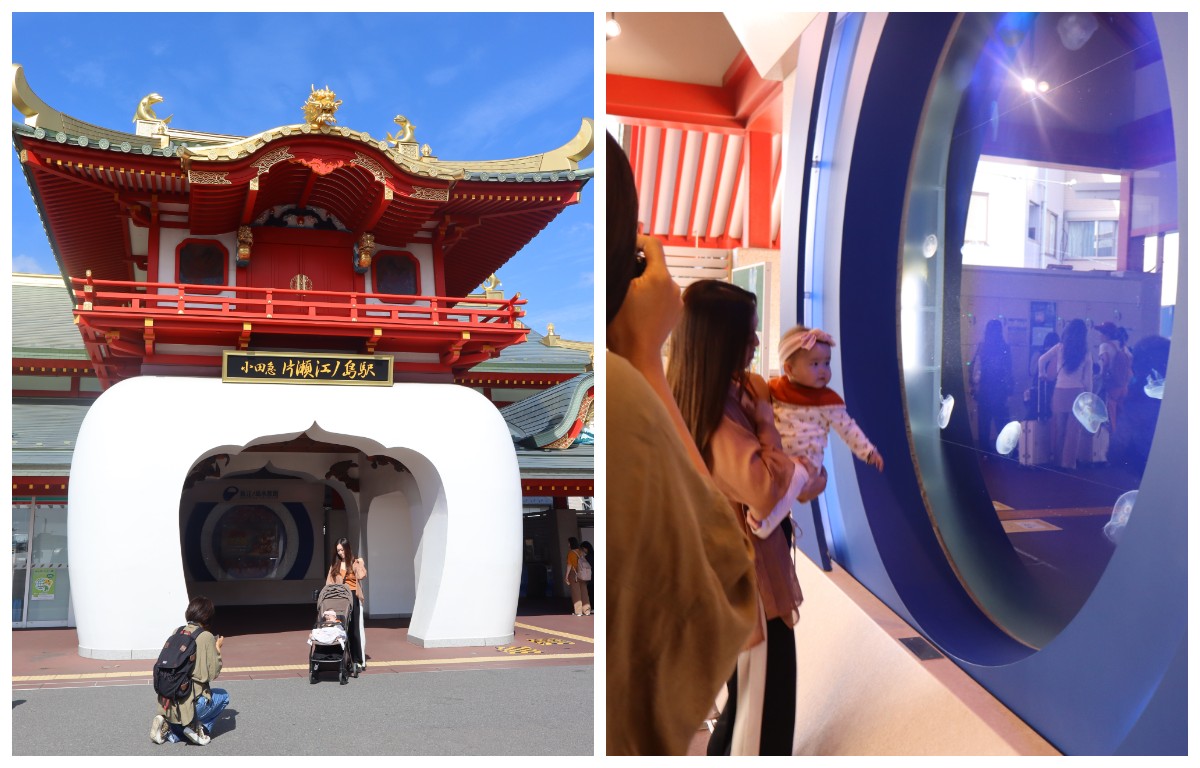 今回の取材では、ママさんと赤ちゃん、編集者さんに片瀬江ノ島駅までお越しいただき、実際に設備やサービスを体験していただきました。
