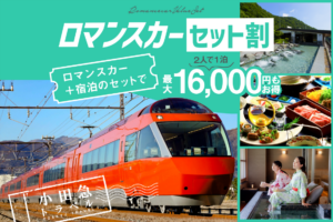 ロマンスカーの座席は「全席指定」。おいしいグルメを車内に持ち込んで、テーブルの上に広げれば、ちょっとしたパーティー気分。自分専用のスペースを、ゆったり使うことができるので、お気に入りのグルメをたくさん持ち込んで、ロマンスカーで過ごす時間を充実させましょう。
