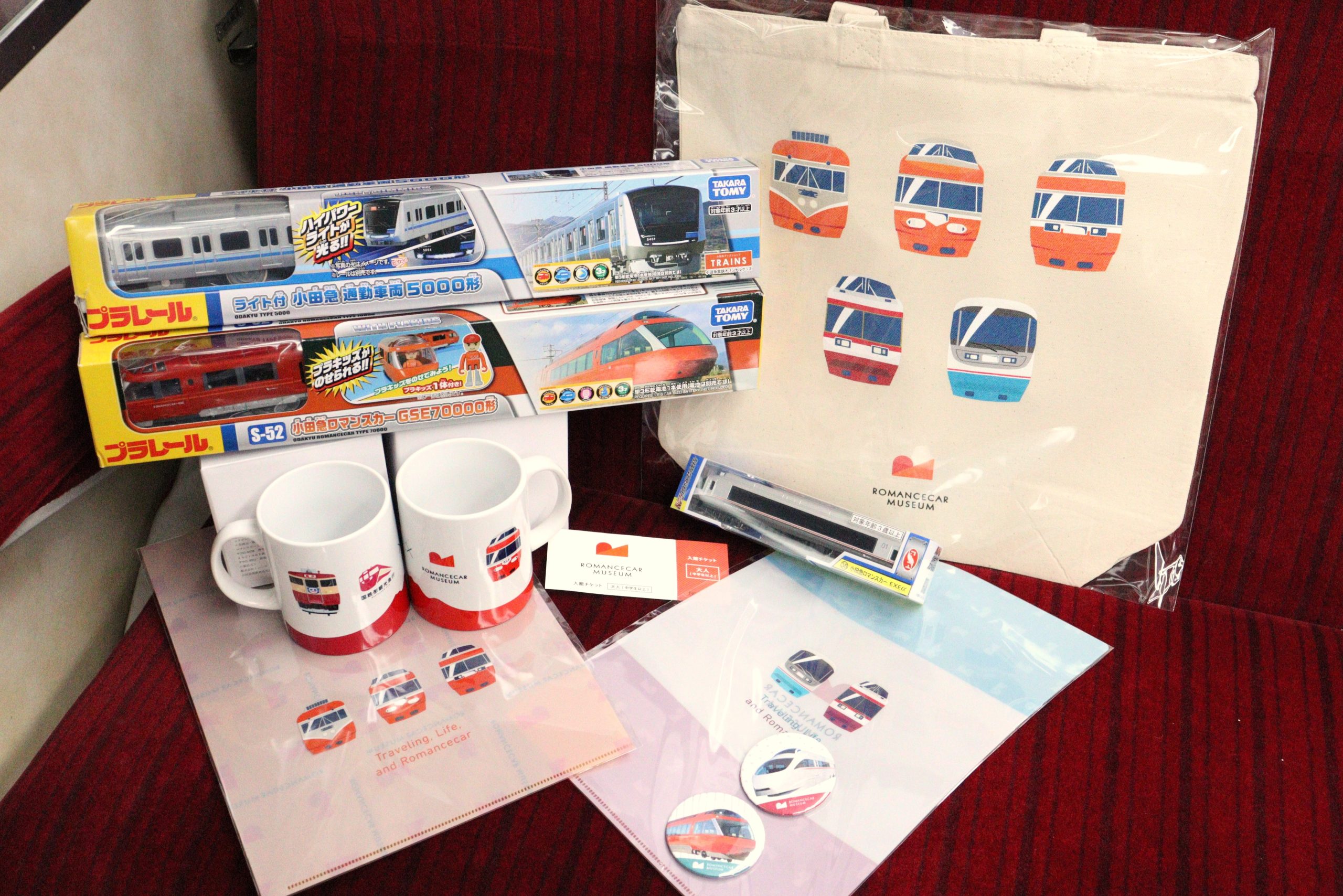 プラレール、入館チケット、当館オリジナルトートバッグ、缶バッジなど…ロマンスカーや小田急に関連するグッズが必ず当たる、お得な福引です。