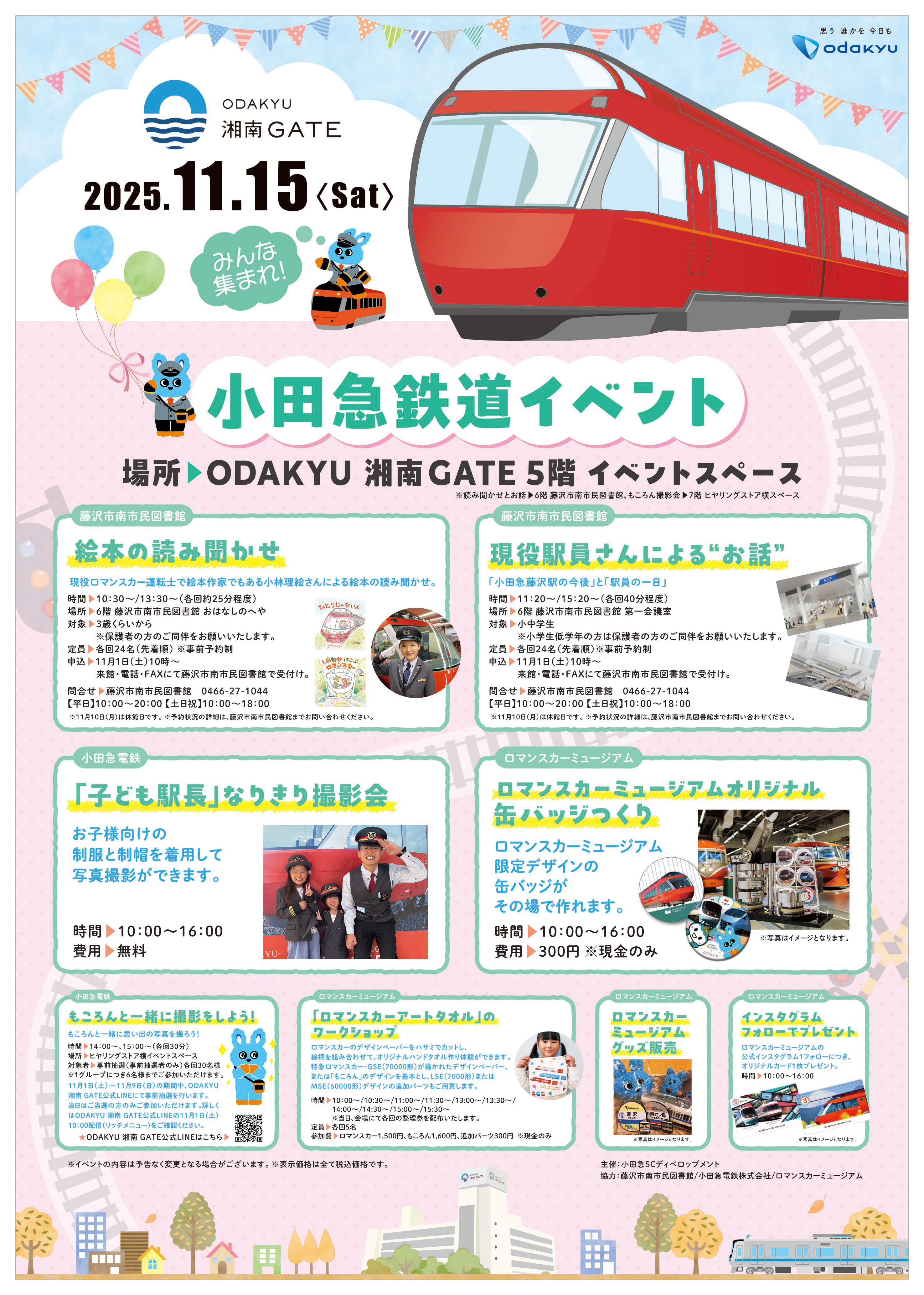 11月15日(土)に、ODAKYU湘南GATEで開催される、「小田急鉄道イベント」の出店が決定しました!