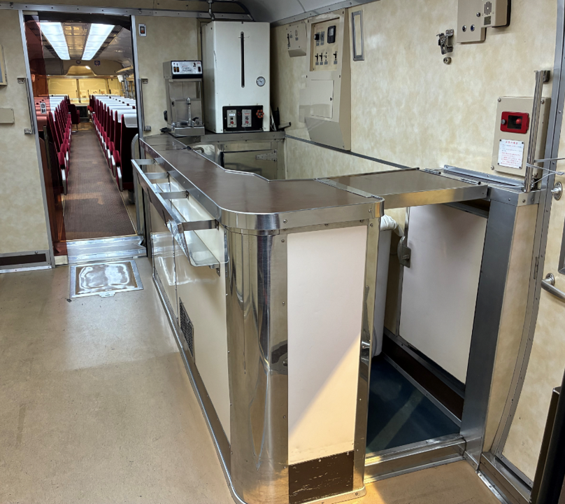普段は立ち入ることのできない展示車両の内部をご見学いただけるほか、写真撮影も可能です。喫茶カウンター付近での学芸員による解説(約15分間)に加え、車内の自由見学(約15分間)を通して、当時の雰囲気をじっくりとお楽しみいただけます。