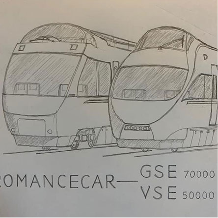 ロマンスカーVSE。ありがとう!写真は私が鉛筆1本で書いたものです。