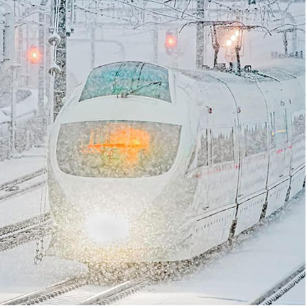 雪の中、記念装飾をつけて走るスーパーはこねVSE