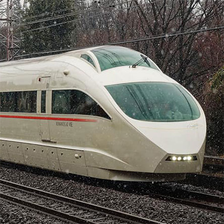 最後の連接車ロマンスカーとなった50000形VSE。白いボディーでありながら圧倒的な存在感を示し、もっと長時間乗りたくなるシートの座り心地と、ゆるやかな加減速が好きでした。